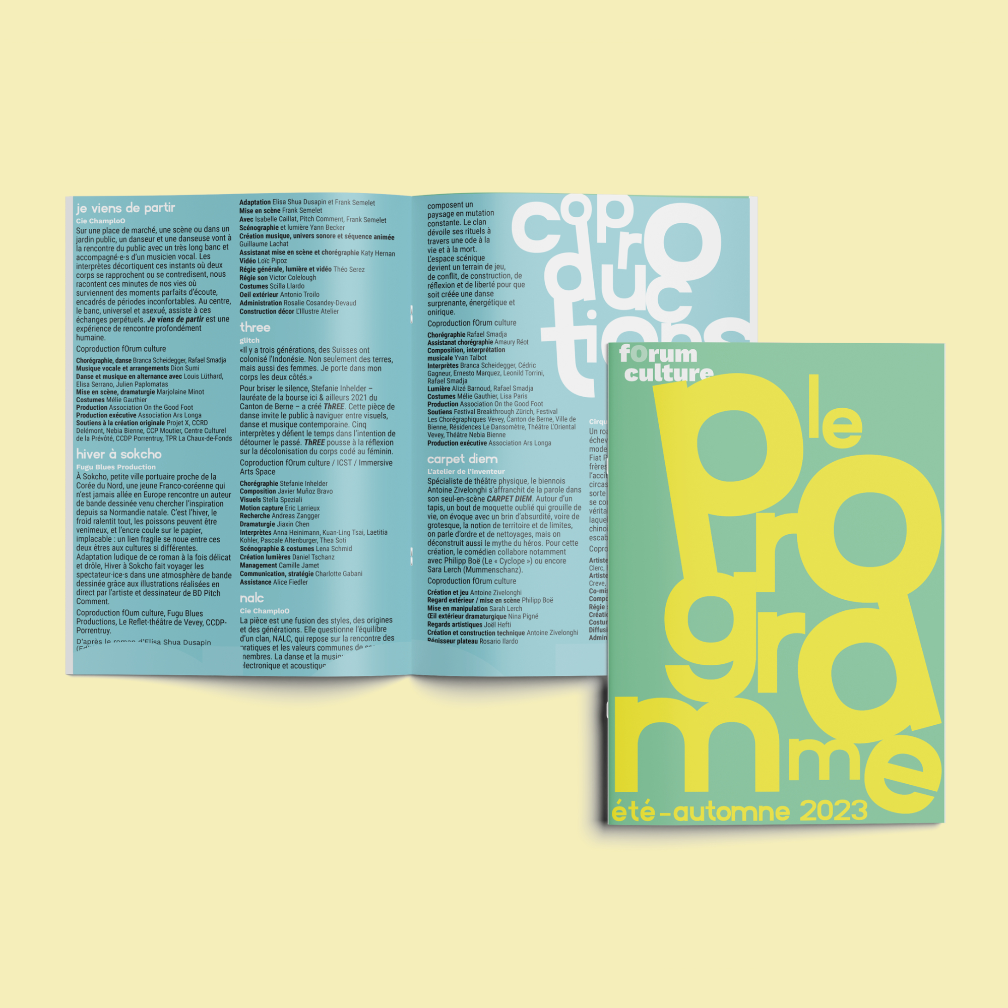 Un dépliant pour présenter les coproductions, les actions de médiations et les formations du fOrum culture.